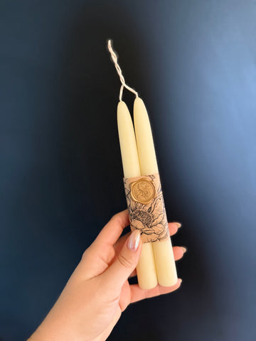 This 8-inch white beeswax taper candle set is a versatile staple for spiritual practice, ritual...