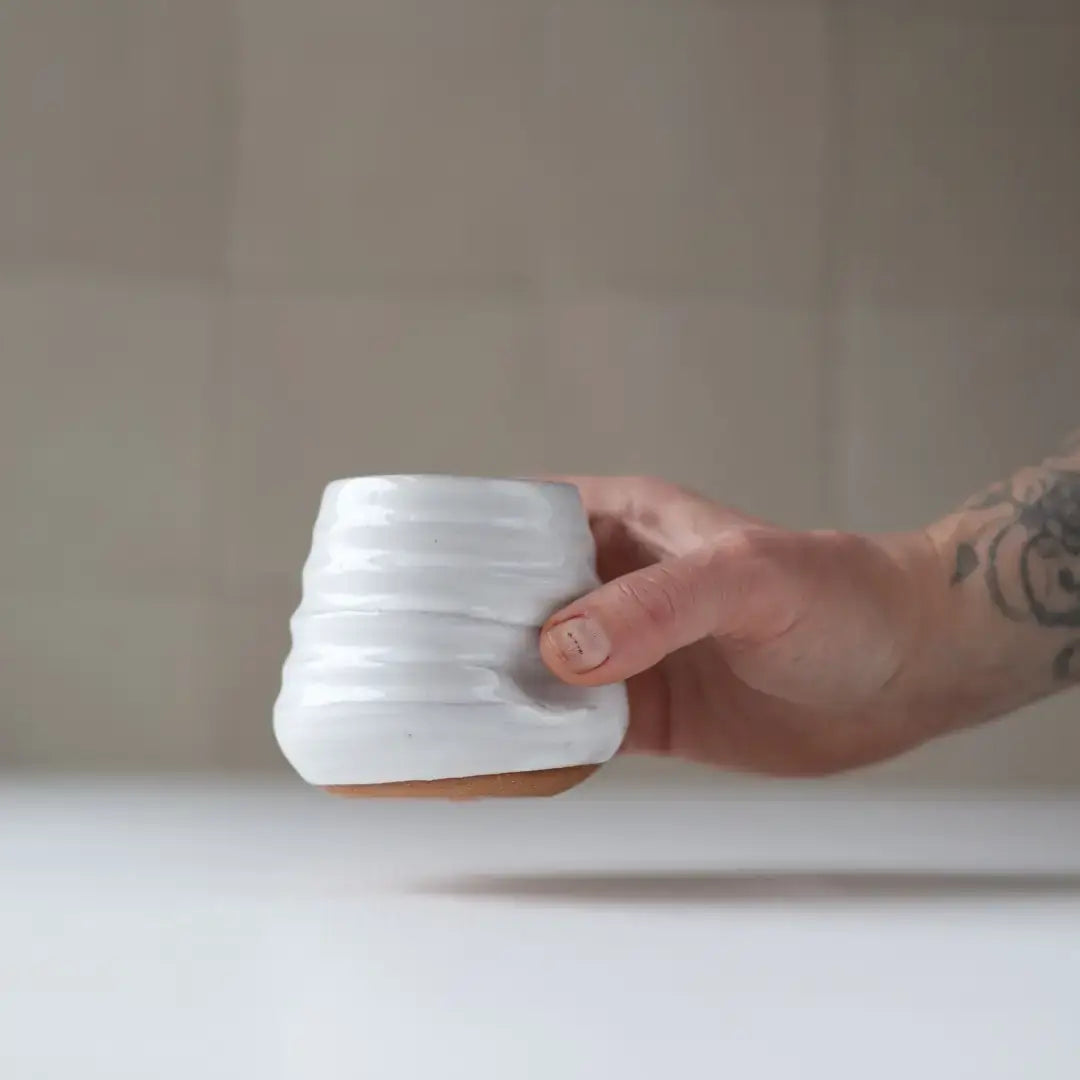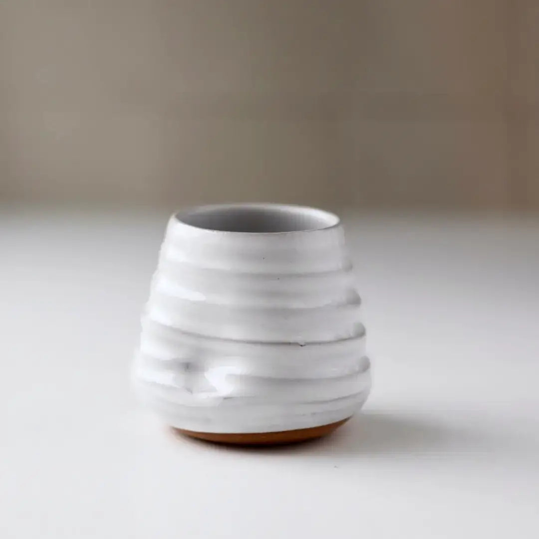 Our favorite wine and cocktail cup revamped and updated! Holds approximately 8 ounces making it a nice size for wine or mixed cocktails but also fabulous for all the things you drink all day long. We love to freeze the cups for an hour or two before using them in the hot summer so our favorite adult beverages don't get watered down with ice. Measures approximately 3" Handmade on the pottery wheel by real humans in our Indianapolis studio. No two are quite the same. This means that every one of them will be different, unique and have its own personality. When you order a set you will receive handmade cups that vary in size, form and color. That is the thing that makes handmade so amazing and we embrace that diversity. It is never a flaw.