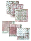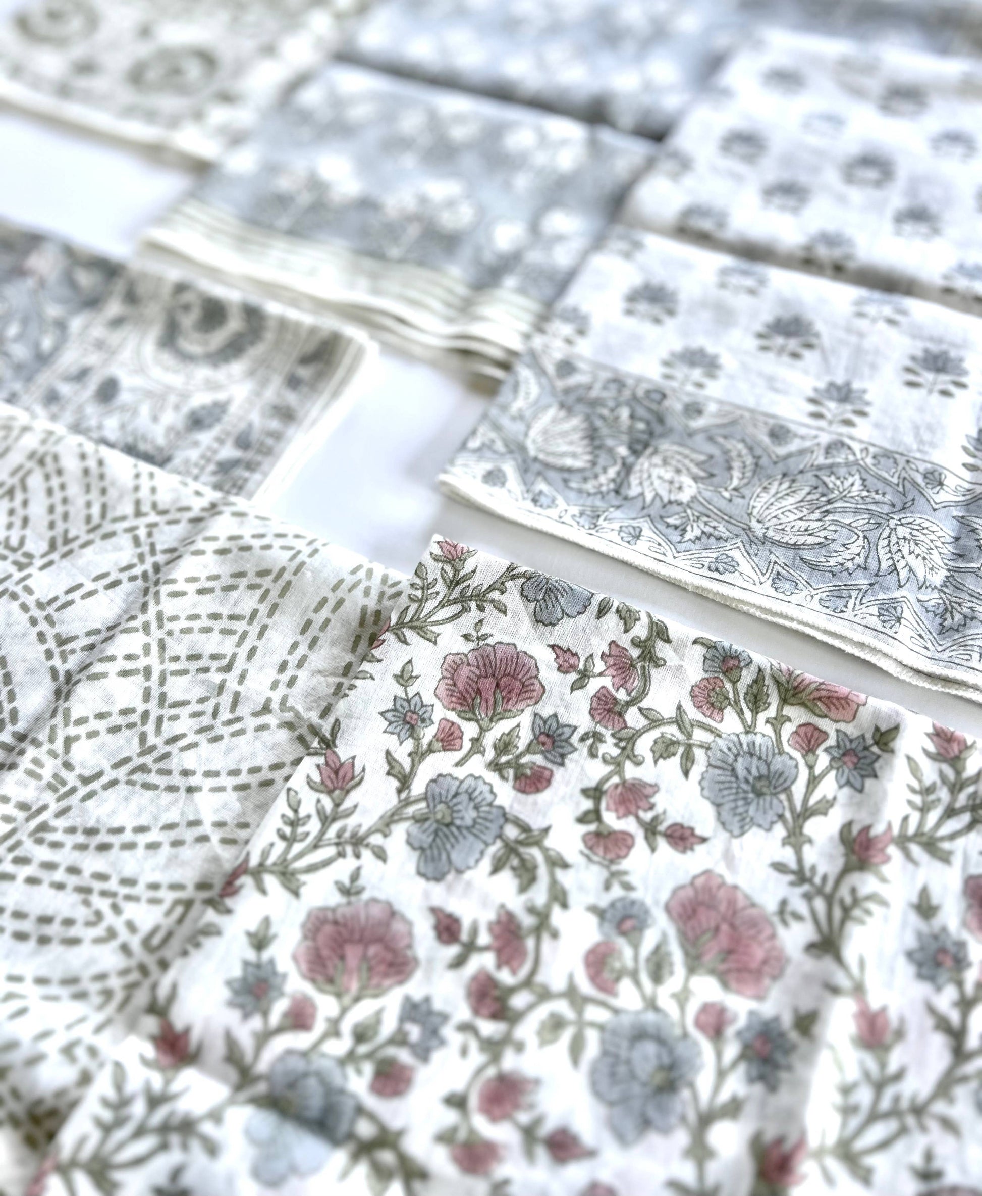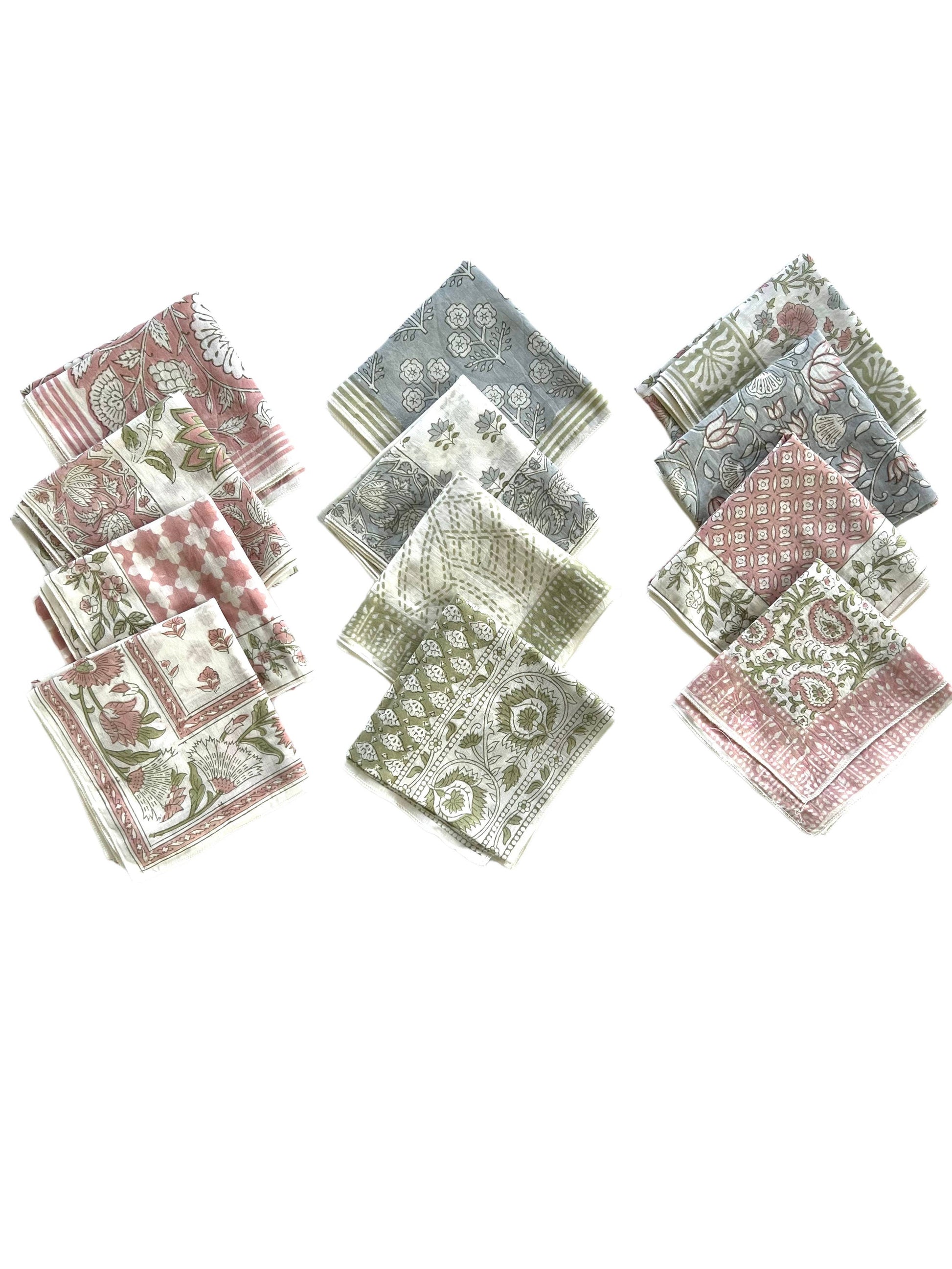 Our charming block printed bandanas work well as a headscarf, necktie, cold or hot bevey wrap,
