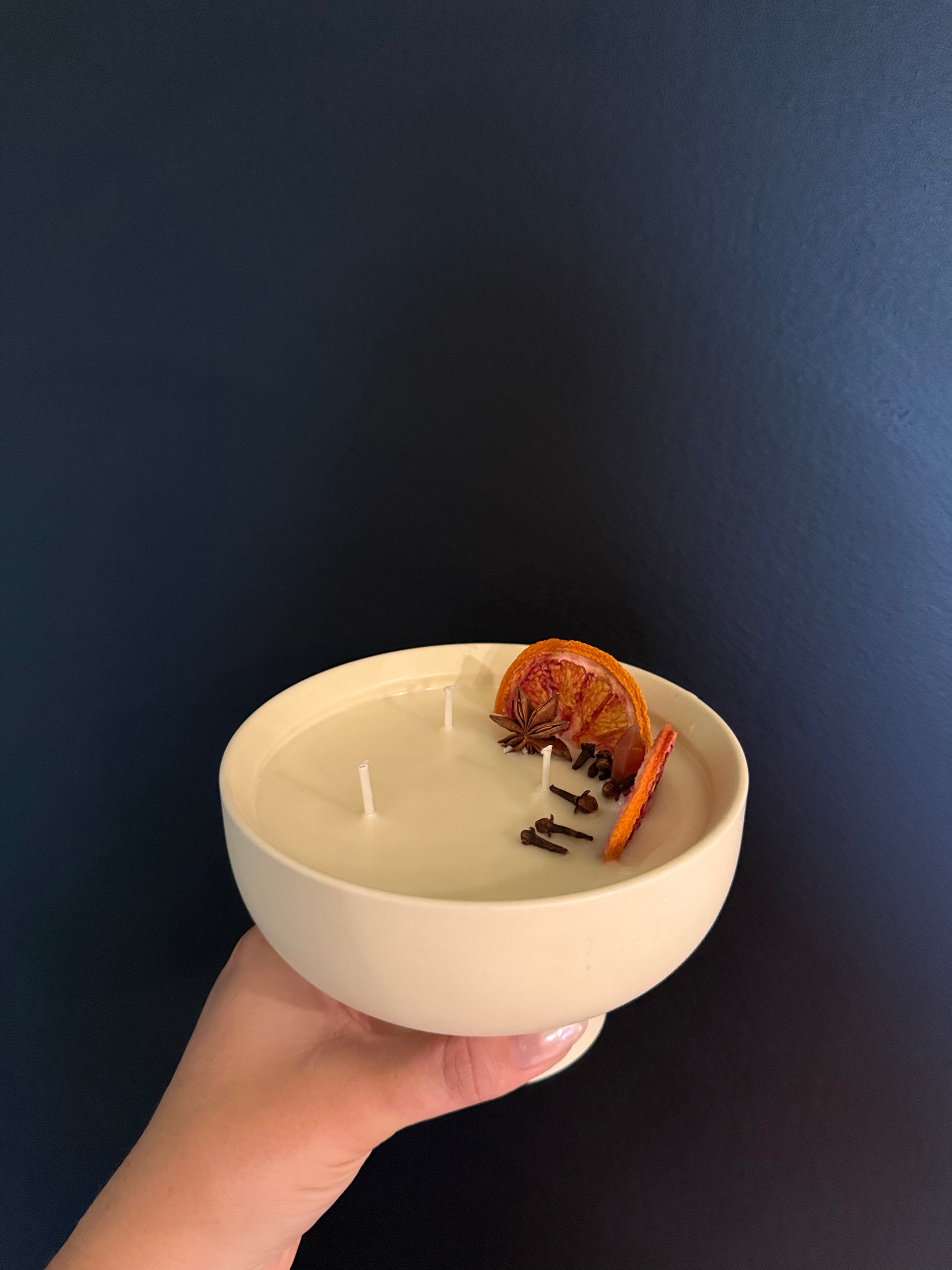 Citrus Clove Solstice Bowl Candle – Hand-Poured Soy Candle with Dried Orange + Clove (14 oz)