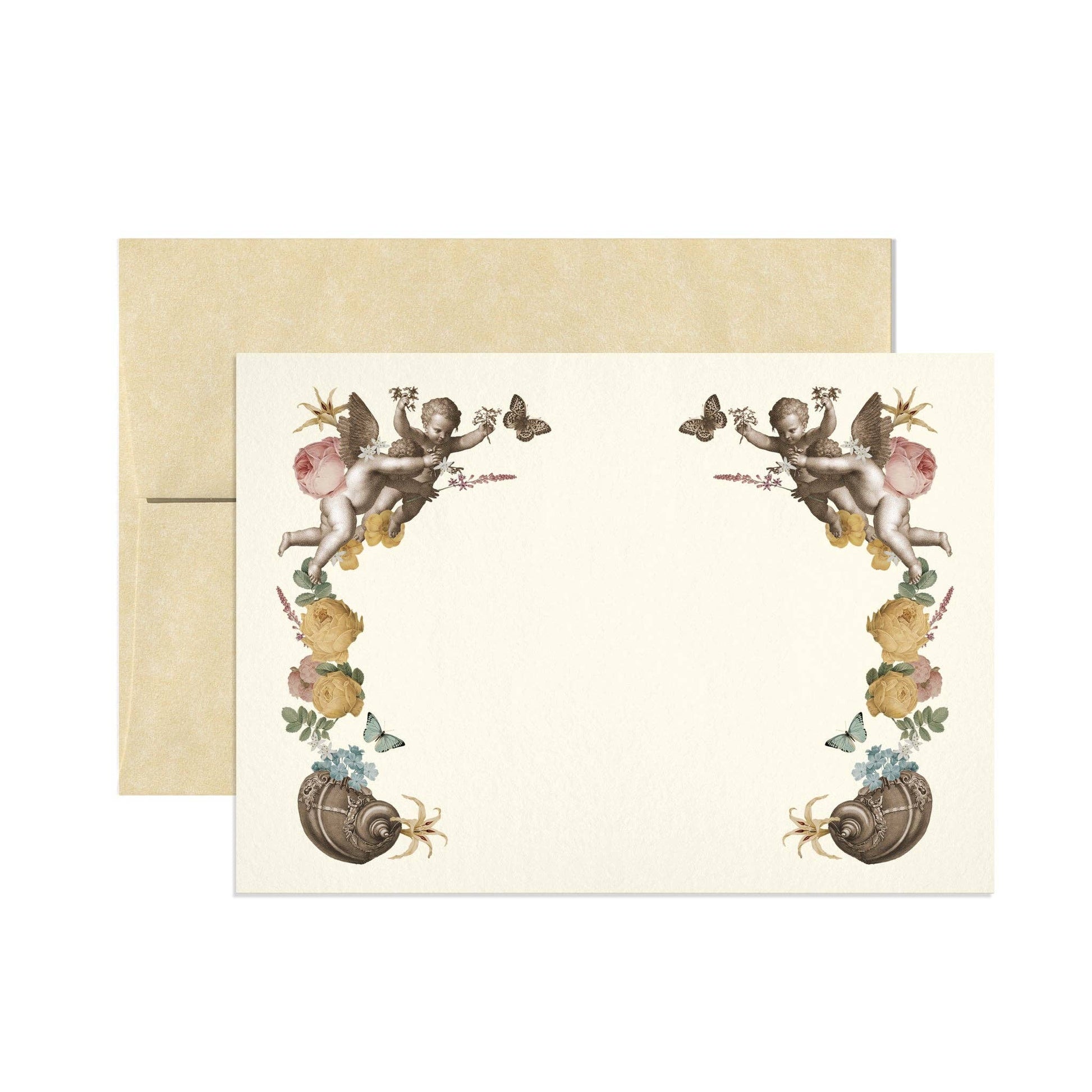 Cupid Frame Stationery Set – 6 Vintage Cards with Gold Envelopes