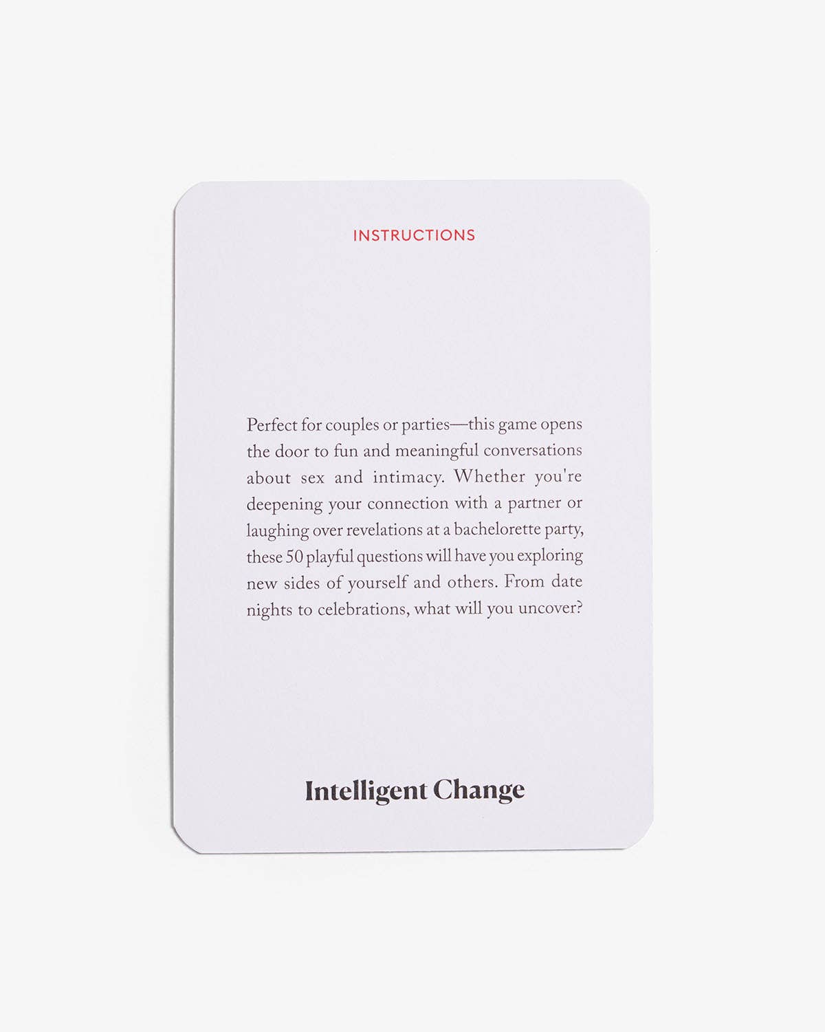 Get Closer: Intimacy Edition is a thoughtfully designed prompt card game created to deepen connection, encourage open communication, and explore intimacy through meaningful conversation.