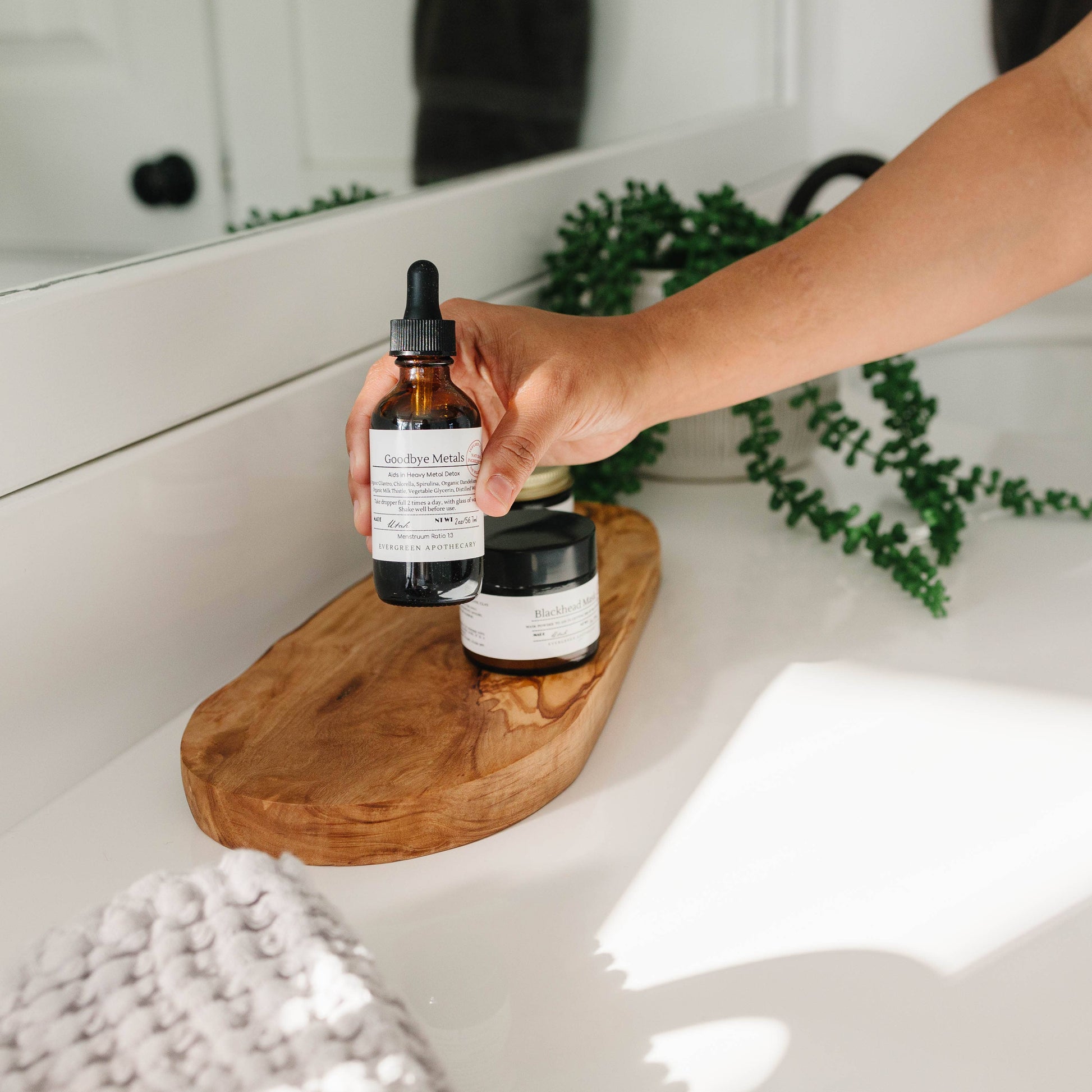 Goodbye Metals is our heavy metal detox. It contains Chlorella, Spirulina, Cilantro, Dandelion Root, and Milk Thistle.
