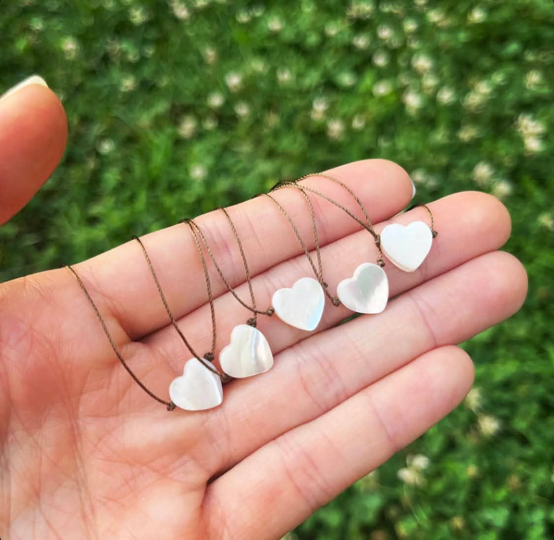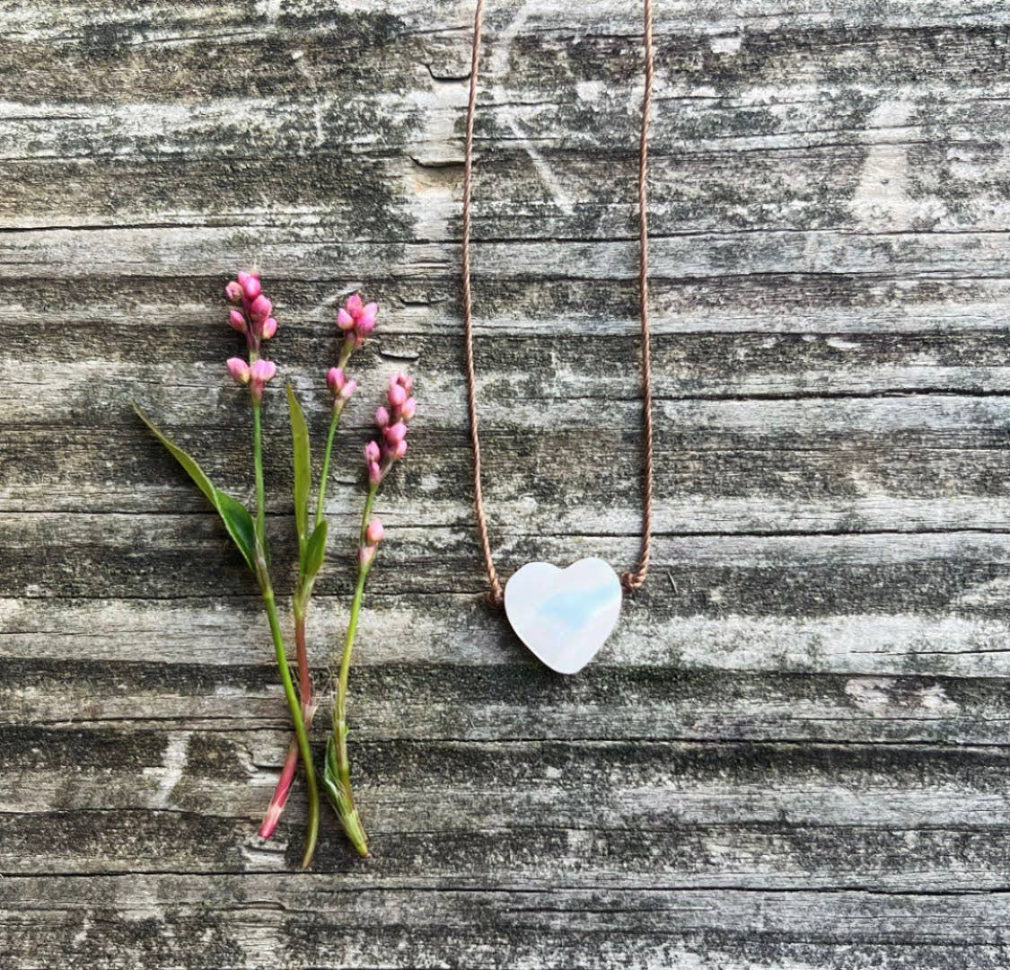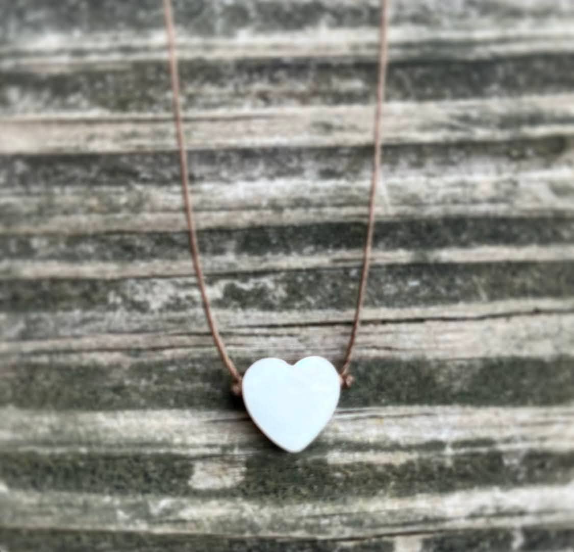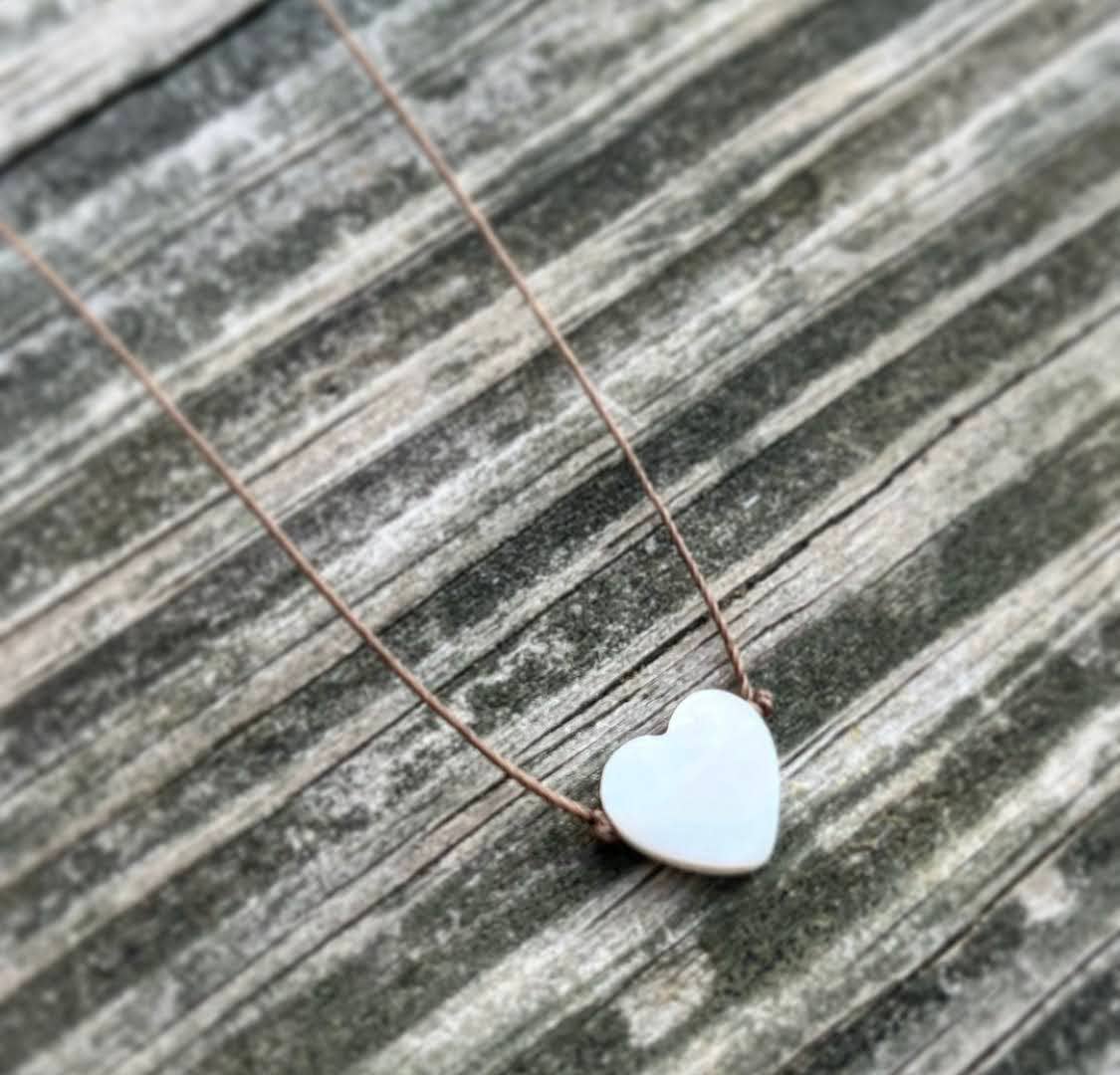 Delicate and timeless, this Mother of Pearl White Heart Necklace carries a soft, luminous beauty that reflects love, intuition, and harmony. Each piece is hand-knotted on a fine light brown cord, creating a natural and effortless look that layers beautifully or shines on its own.