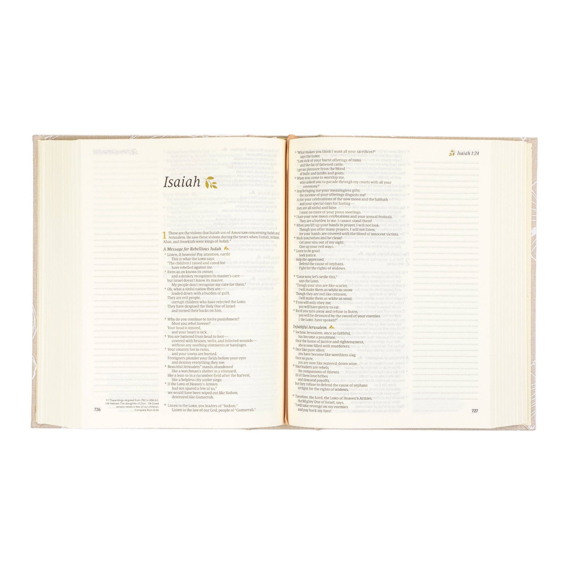 Cordova, Alaska is a breathtaking city situated on Prince William Sound in the Gulf of Alaska. It is surrounded by naturally protected waters and beautiful, untamed wilderness. The sprawling open spaces are surrounded by mountains and have a temperate rainforest climate, making them rich with vibrant foliage and flowers. The muted, light colors of this Bible mix a little icy winter with beautiful spring florals. The front cover of this Bible says “The Word of God,” and the back cover reminds us of our freedom in Christ: “So if the Son sets you free, you will be free indeed” (John 8:36).