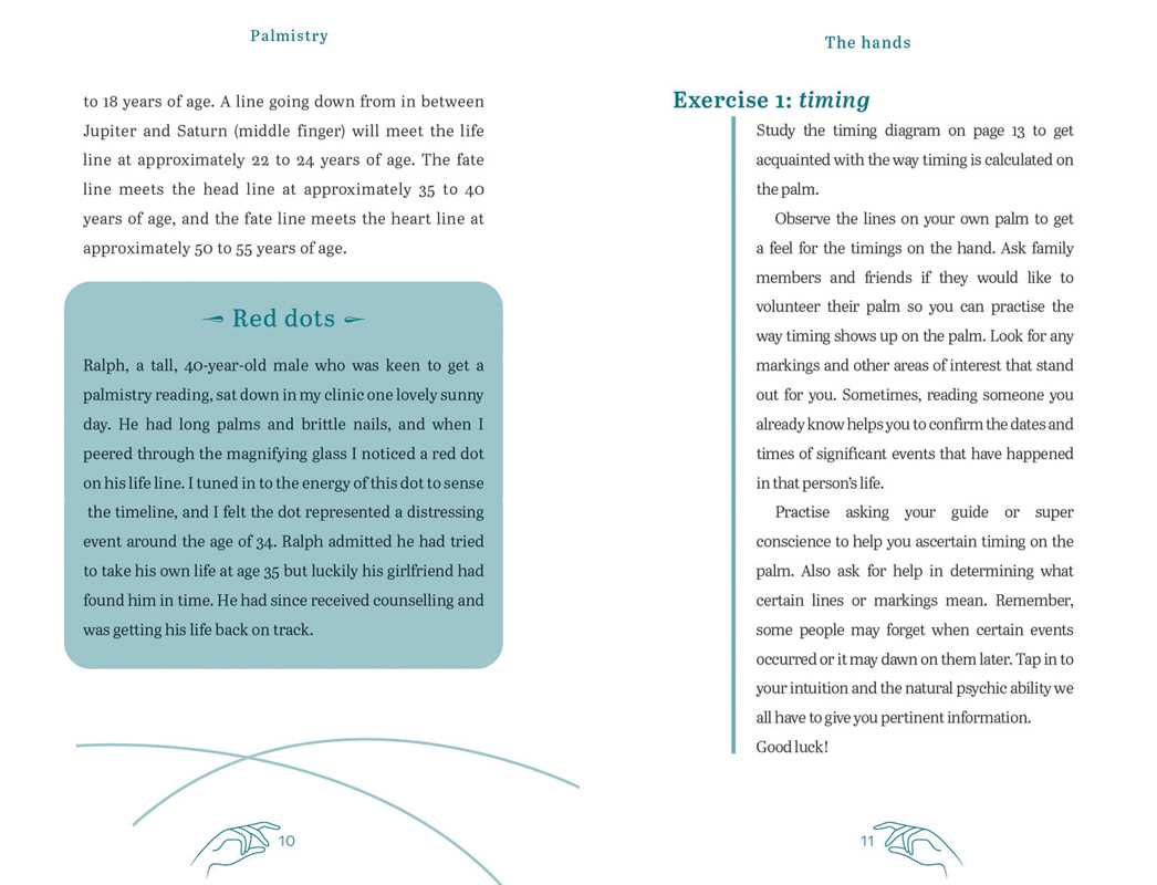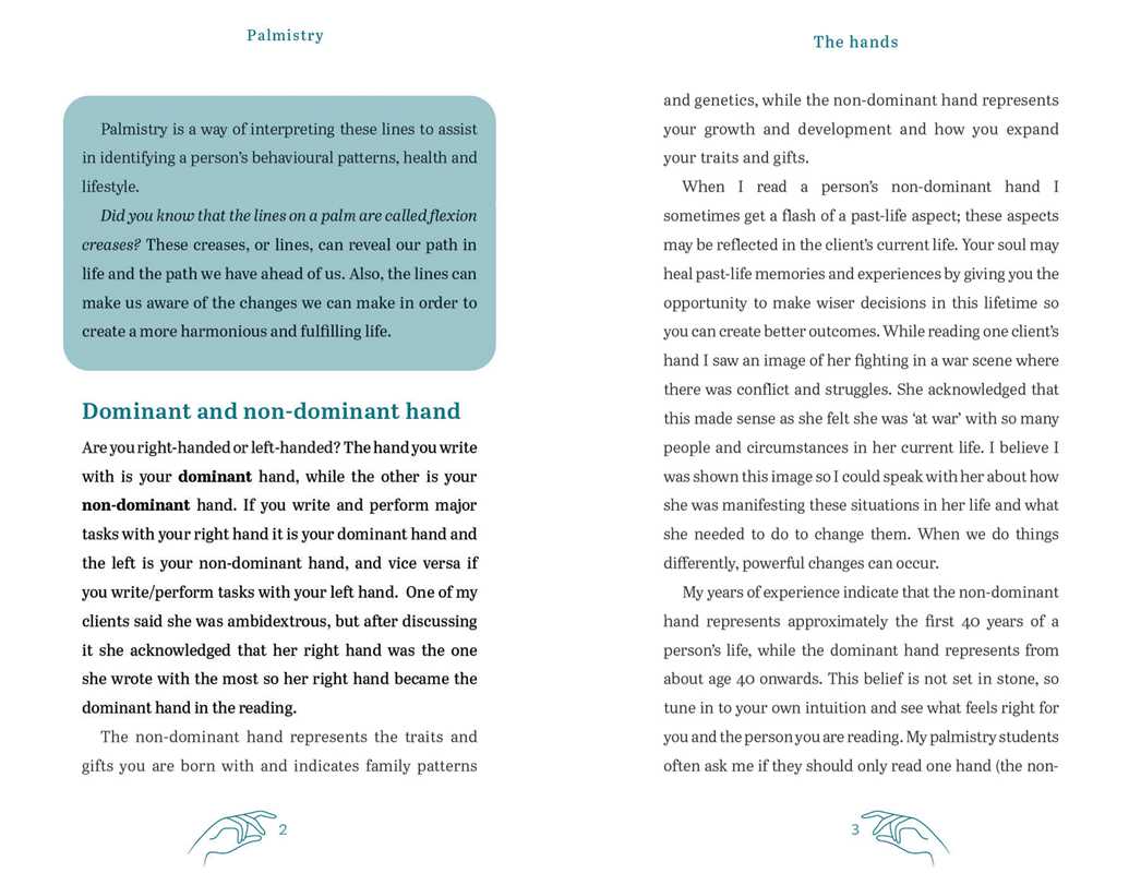 Included in the book is information about science, hand reflexology, chakras and meridians to enhance your knowledge. You will also learn how to increase psychic energy so you can give palm readings that are intuitive, accurate and heart-based. Palmistry contains enlightenment on major and minor lines, hand markings, spirit guides, accurate timing, how to detect unique lines and cleansing and grounding techniques, plus tips on how to perform palmistry readings.
