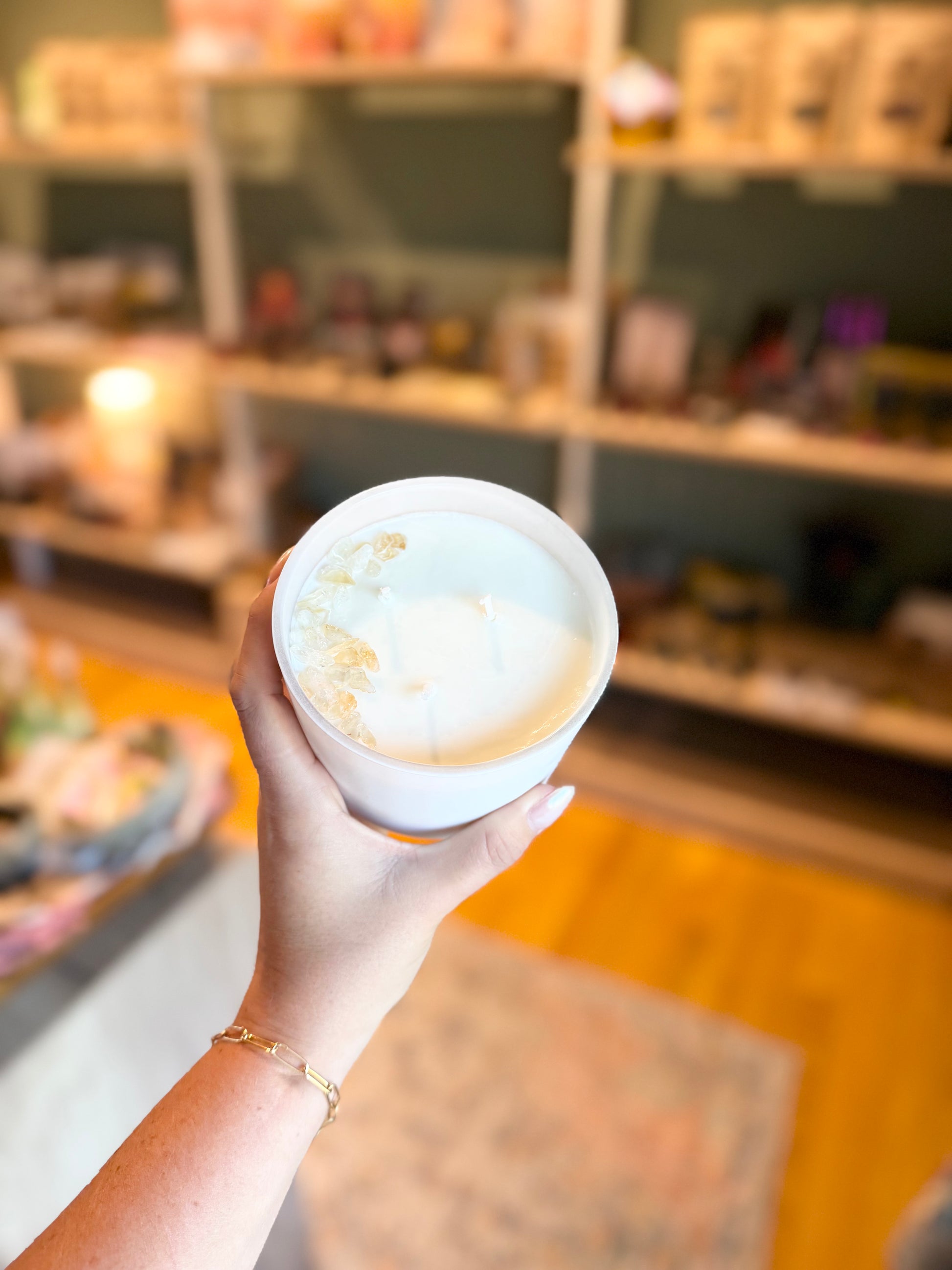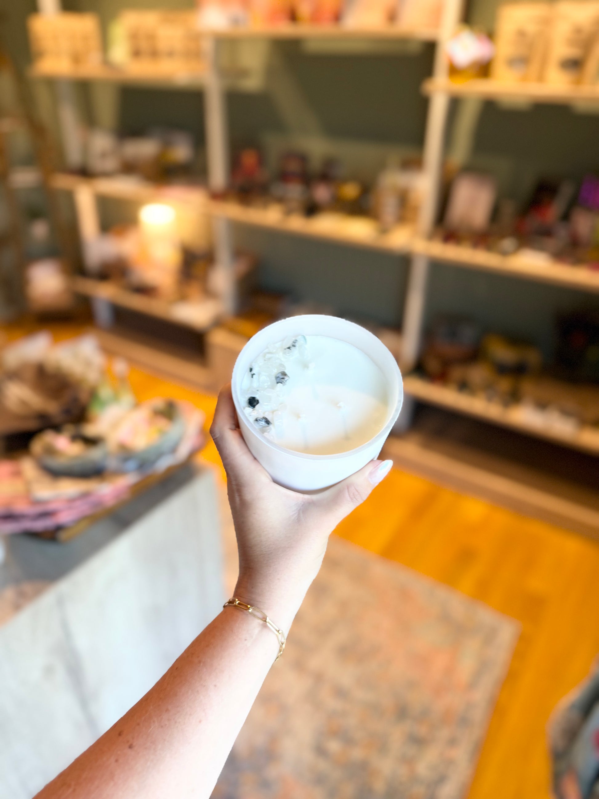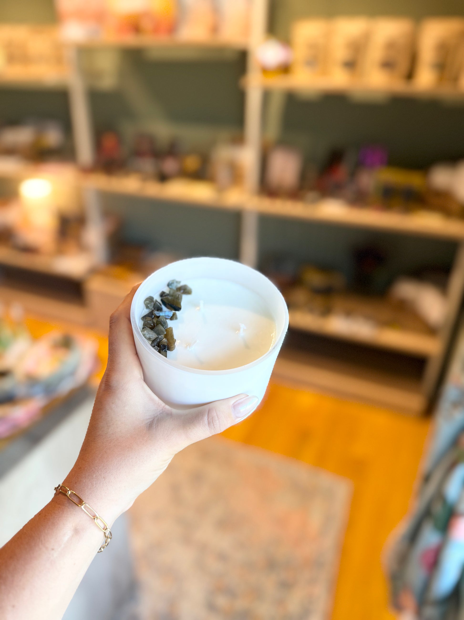 Suggested Use: Light your candle during meditation, journaling, ritual work, or anytime you want to shift the energy in your space. Each flame releases plant medicine and crystal energy to support your intention.