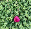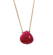 dyed faceted ruby teardrop, hand knotted light brown cord (heat set delicate nylon thread with strong durability and resistance to fraying), sterling silver clasp