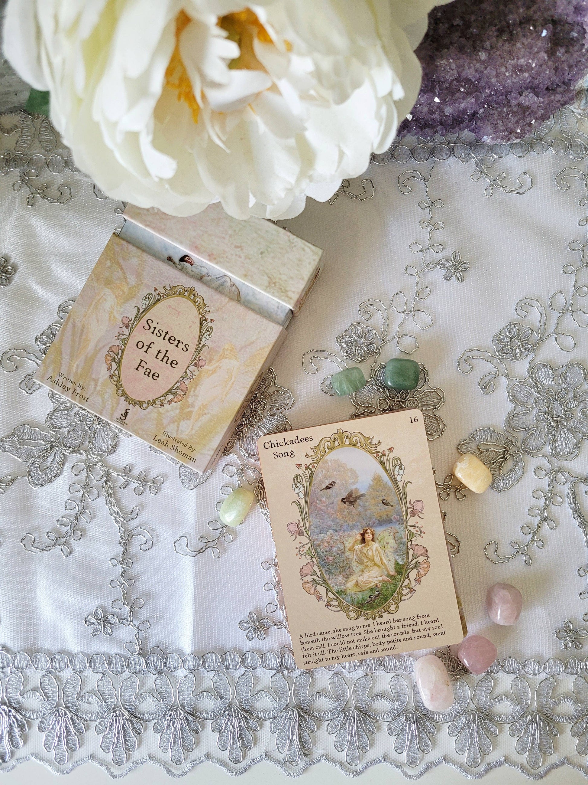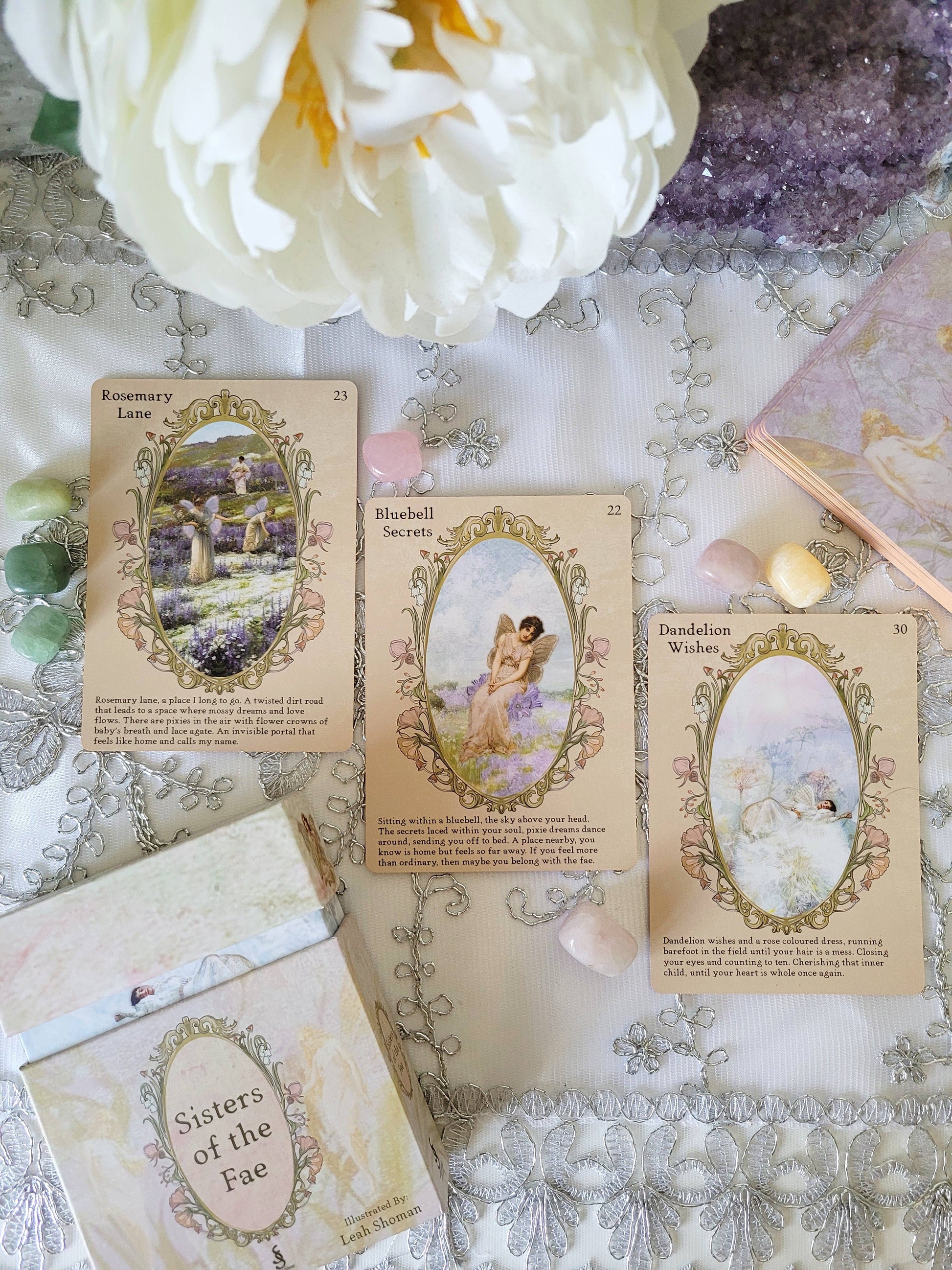 The Sisters of the Fae Oracle Deck is a magical portal to a childlike realm, offering a wondrous journey into abundant fairy realms. This mystical tool grounds you in earthly planes, connecting with Mother Earth and flower keepers.