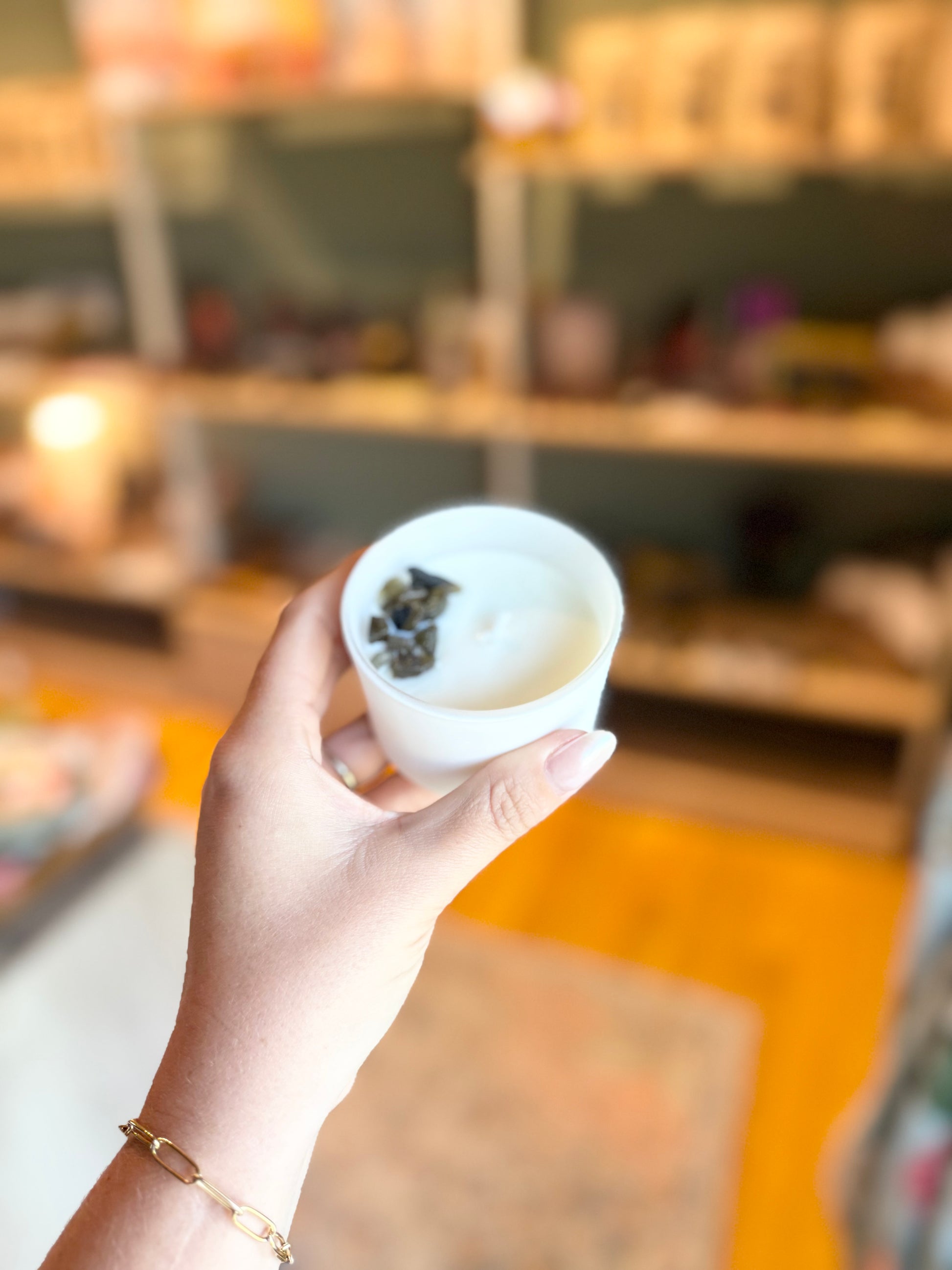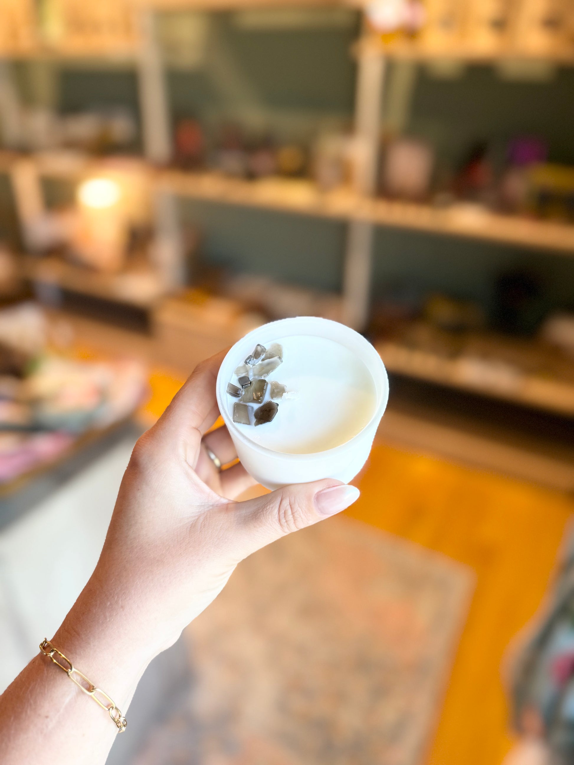 Suggested Use: Light your candle during meditation, journaling, ritual work, or anytime you want to shift the energy in your space. Each flame releases plant medicine and crystal energy to support your intention.