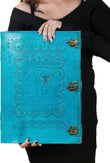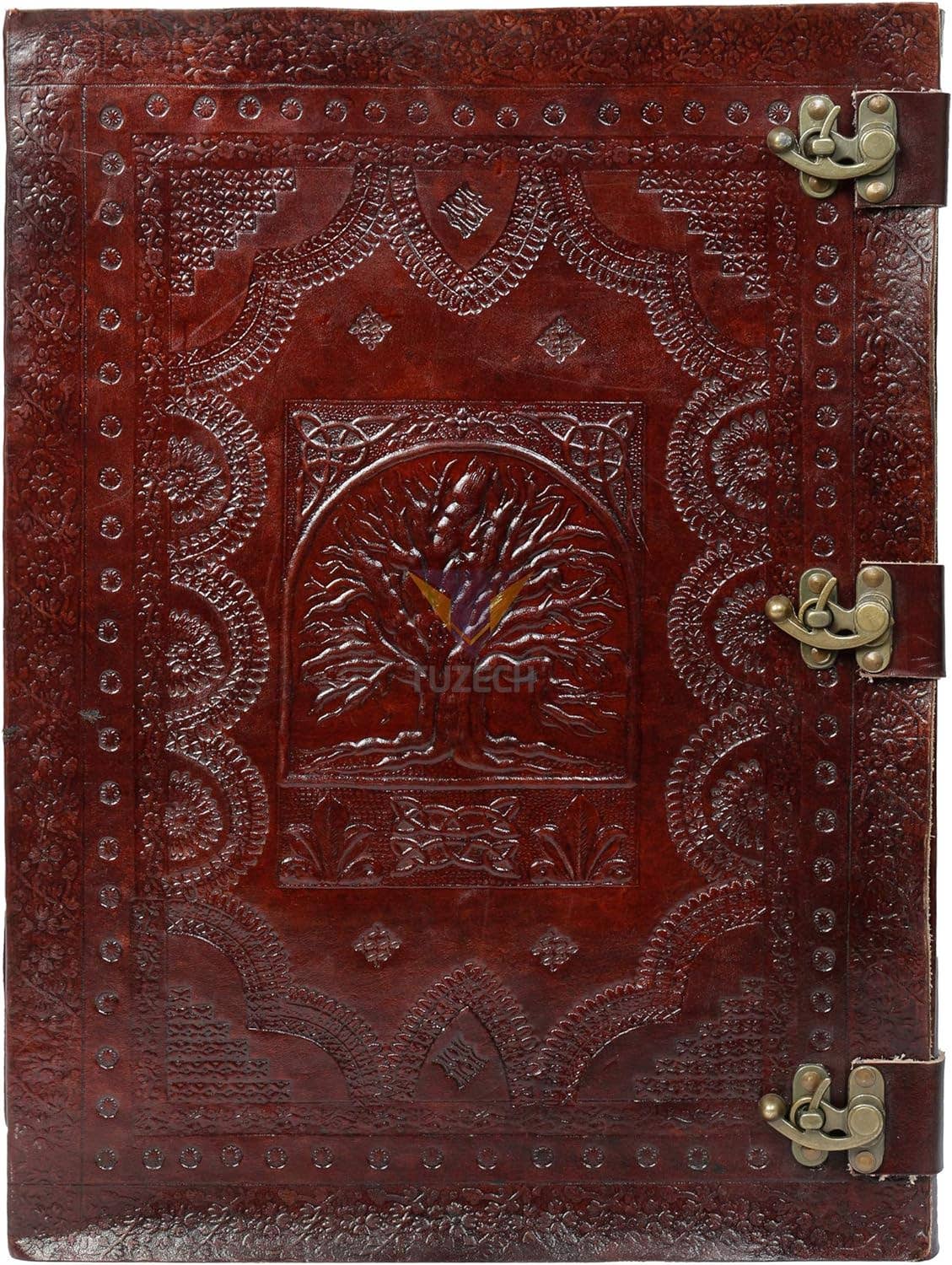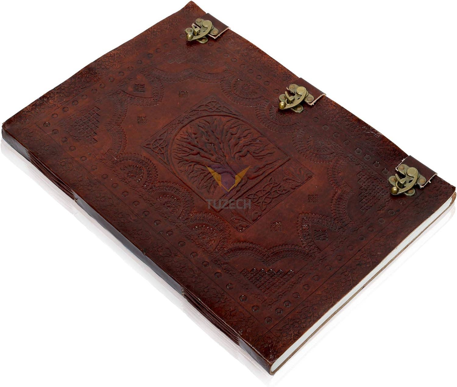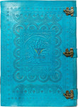 Tuzech Handmade Unique and Antique Notebook Diary for Men Women Nice Tree Embossed Design in Turquoise Color Brass Lock for Nice Closer Unlined Paper