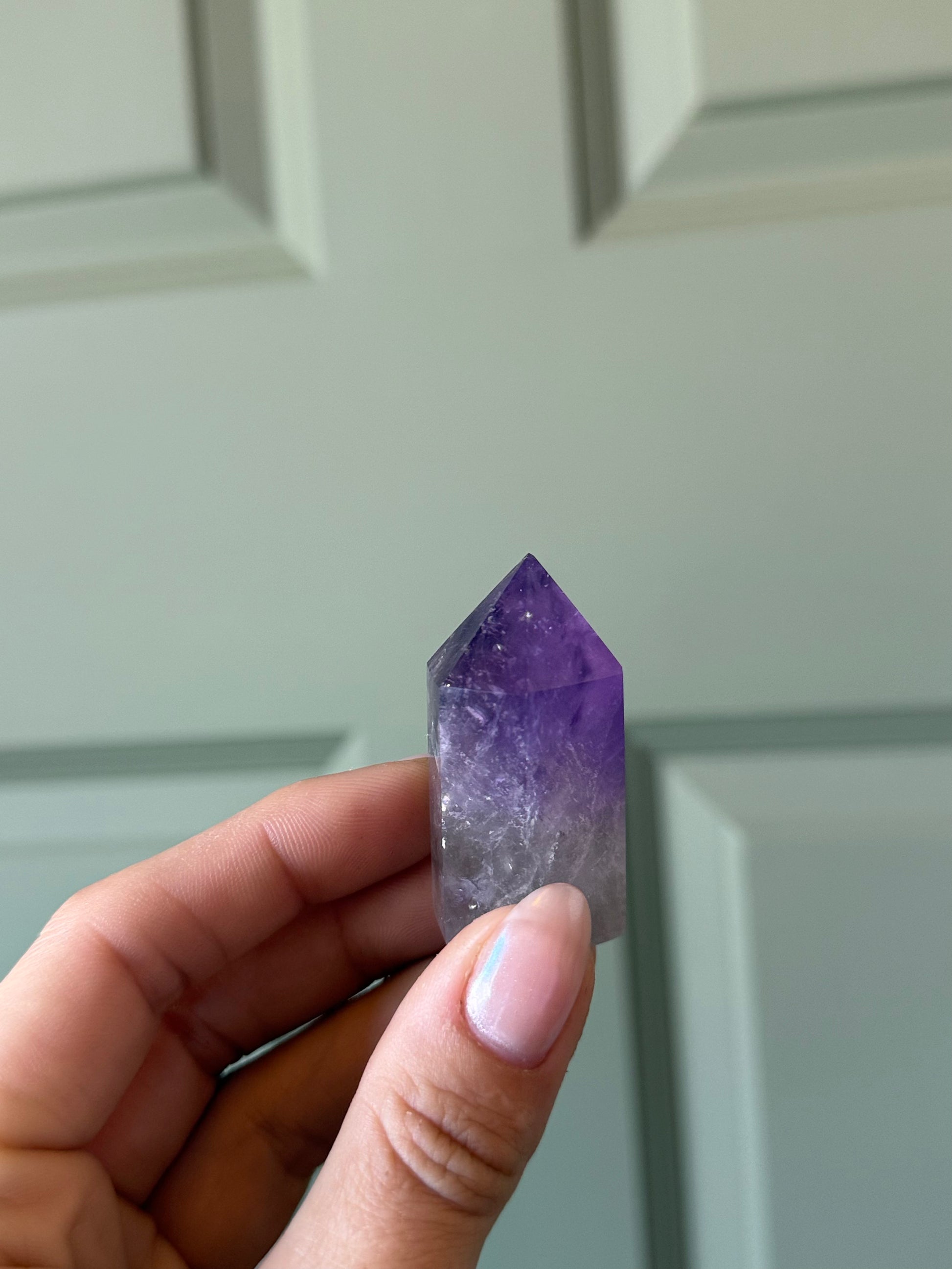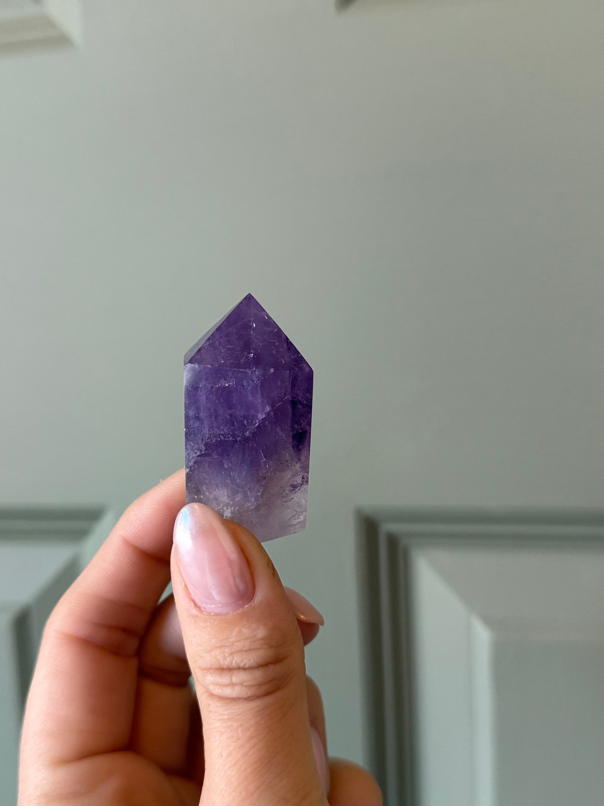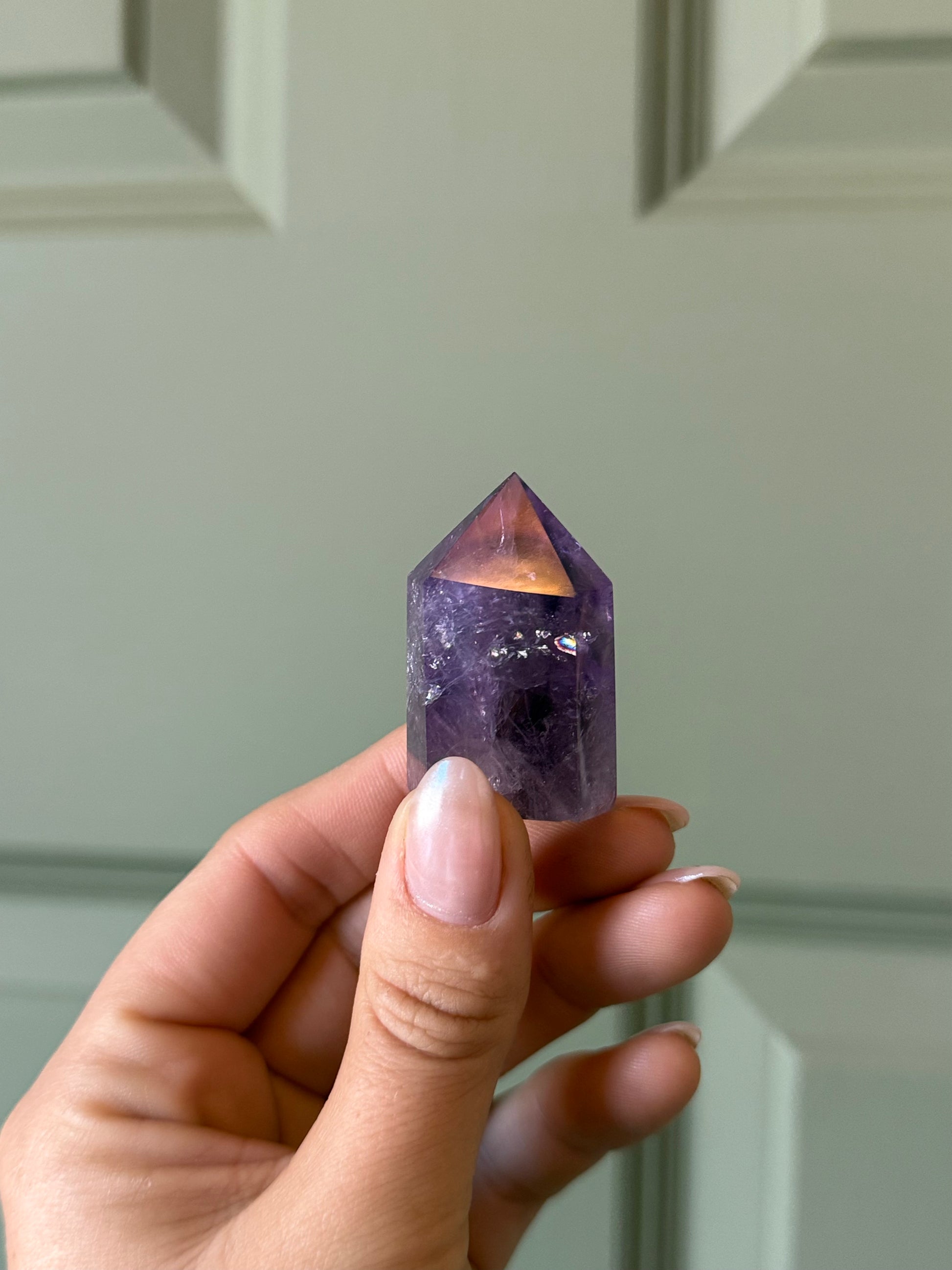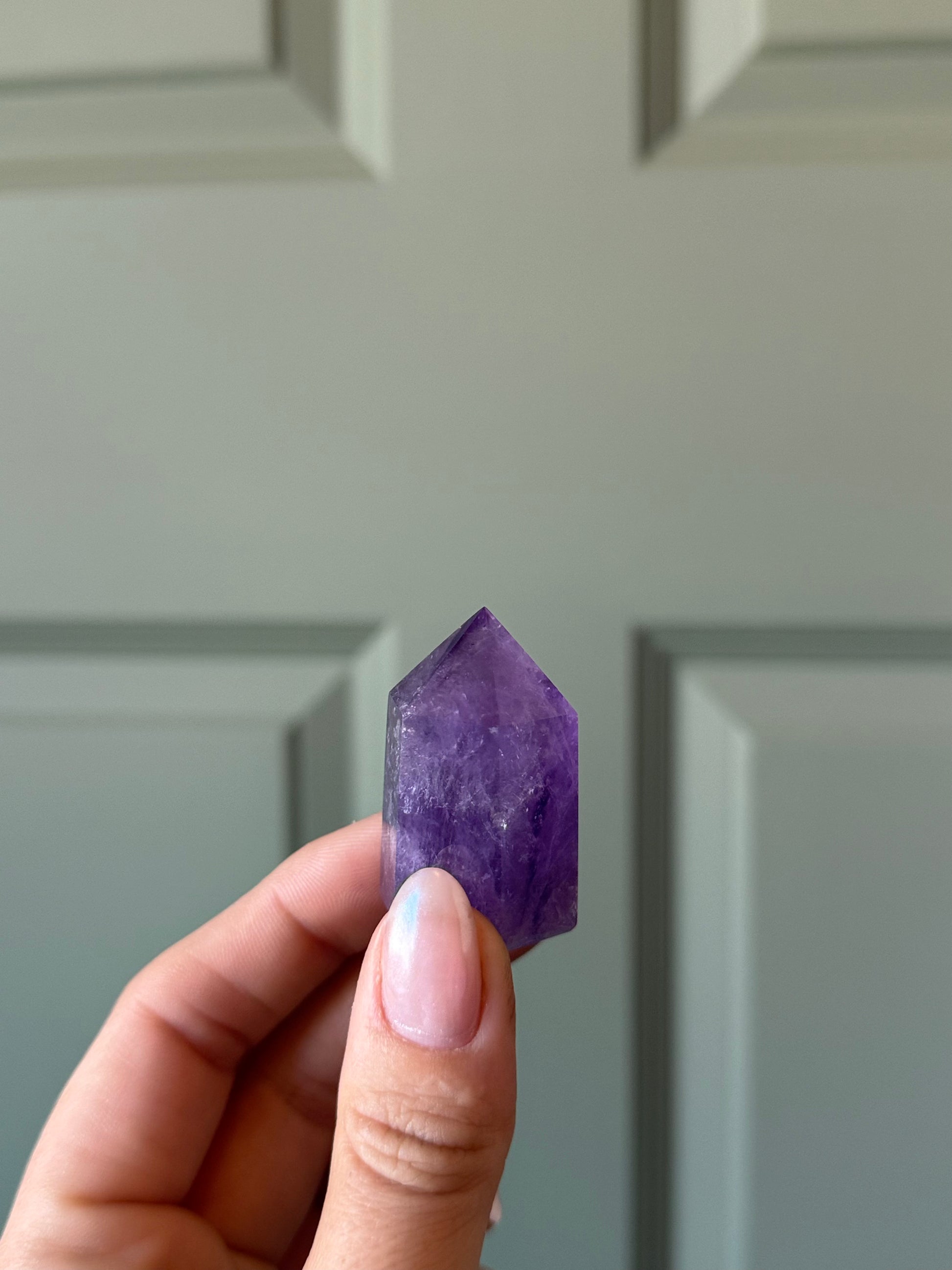 Natural Amethyst Obelisk crystals. Tower can range from 0.5” to 2.5” in length