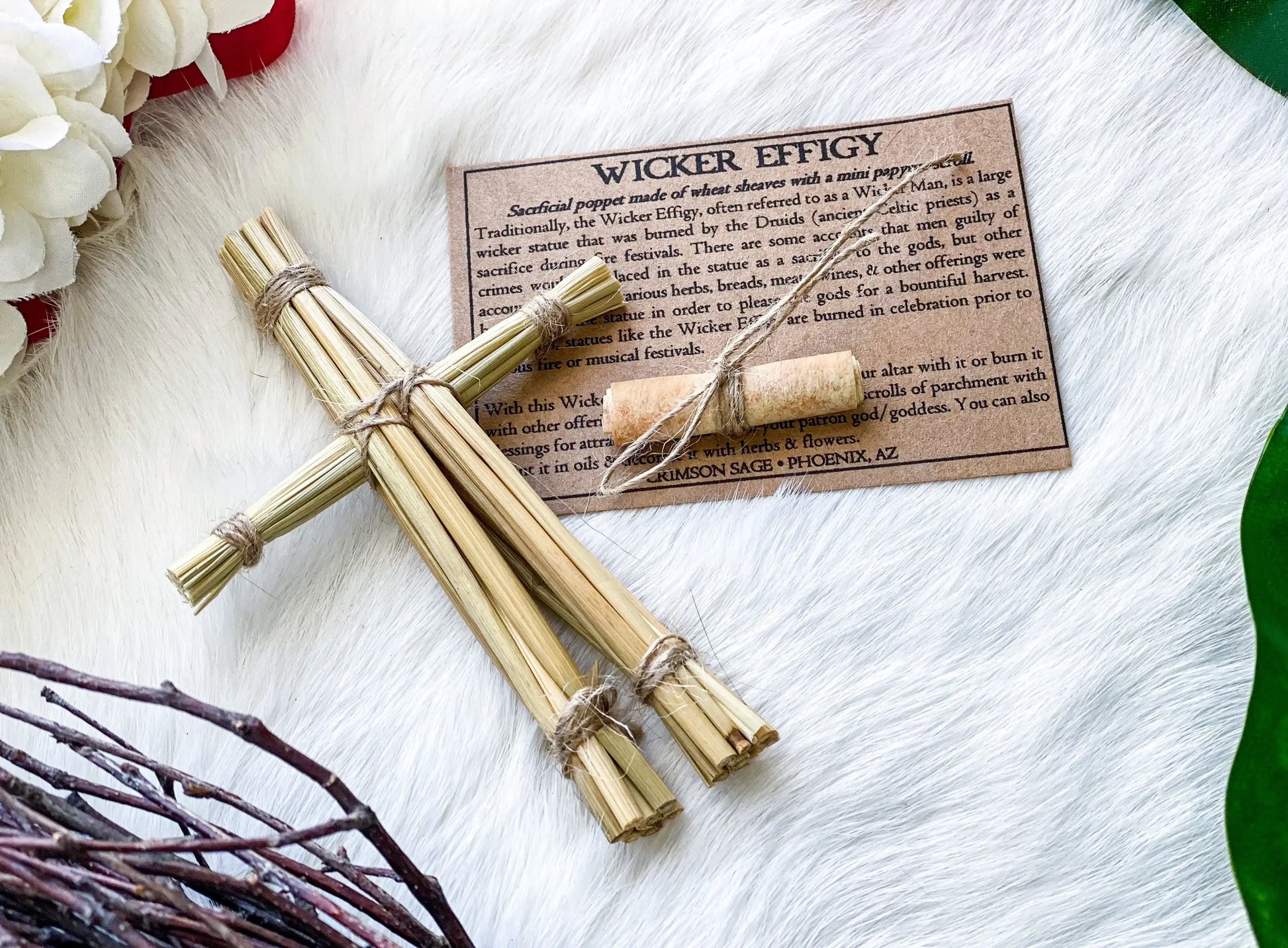 Channel the power of ancient ritual with this handcrafted wheat straw effigy, inspired by the archetypal Wicker Man of old pagan traditions. Measuring 4–5 inches tall, each doll is bound with natural twine and arrives wrapped in cellophane with a parchment scroll, twine tie, and information card to guide your practice.
